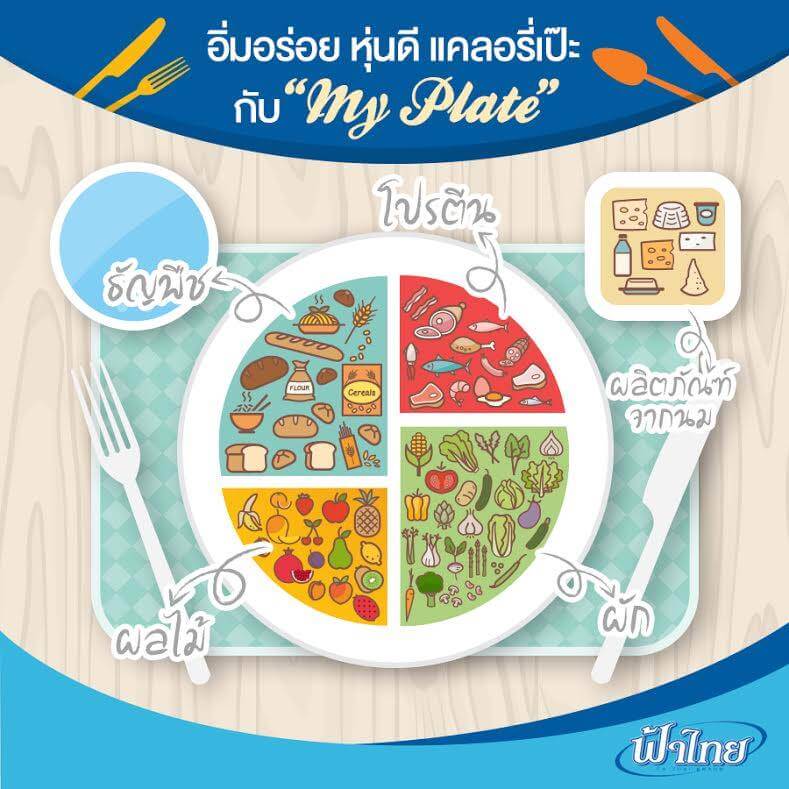 ฟ้าไทยขอแนะนำหลักการMy plate ที่คิดค้นโดย หน่วยงาน USDA อเมริกา การแนะนำวิธีดูแลรูปร่างและสุขภาพแบบยั่งยืนโดยใช้จานอาหารปกติเป็นตัววัดสัดส่วนการกินในแต่ละมื้อให้พอดีโดยไม่ยุ่งยาก แค่กินผักผลไม้ ครึ่งหนึ่ง โปรตีนและธัญพืชไม่ขัดสี อย่างละ1 /4จาน และตบท้ายด้วยนมไขมันต่ำ1ถ้วย ทุกมื้อ เทคนิคนี้จะช่วยให้เราเคยชินและปรับพฤติกรรมการกิน นอกจากหุ่นดี สุขภาพดีแล้วยังได้ฟินกับการกินอาหารหลากหลายแบบไม่ต้องอดด้วยค่ะ #fathai #เติมความสุขทุกความอร่อย