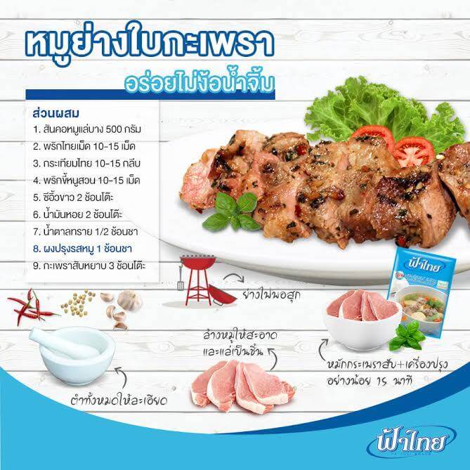 วันอาทิตย์แบบนี้มาตั้งเตา ปาร์ตี้ปิ้งย่าง พักผ่อนแถมอร่อยด้วยเมนู หมูย่างใบกะเพรา กันดีกว่าค่ะ ทำง่ายช่วยกันได้ทั้งครอบครัว จะทานเปล่าหรือกับข้าวสวยร้อนๆ ก็อร่อยไม่ง้อน้ำจิ้มเลยค่ะ #ฟ้าไทย