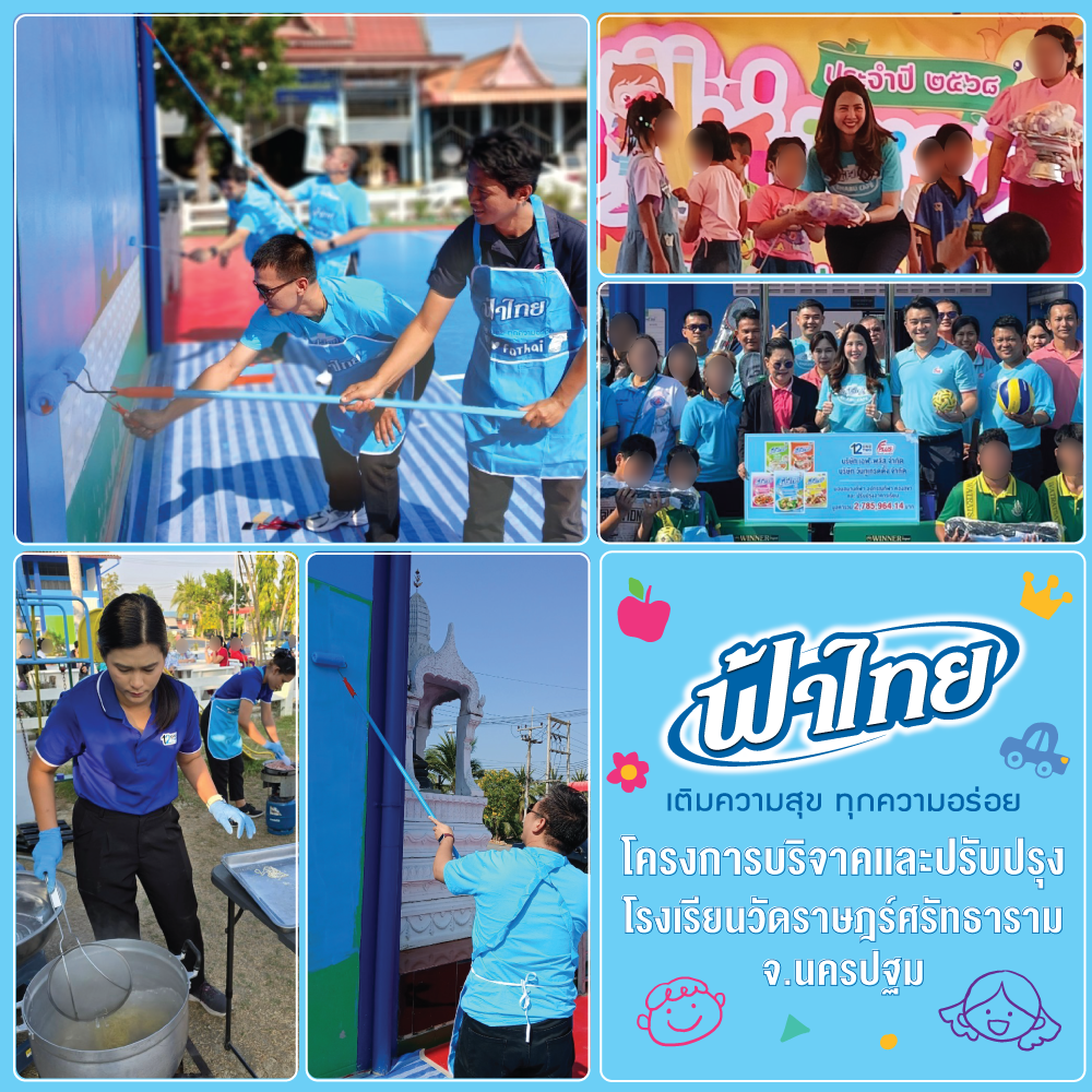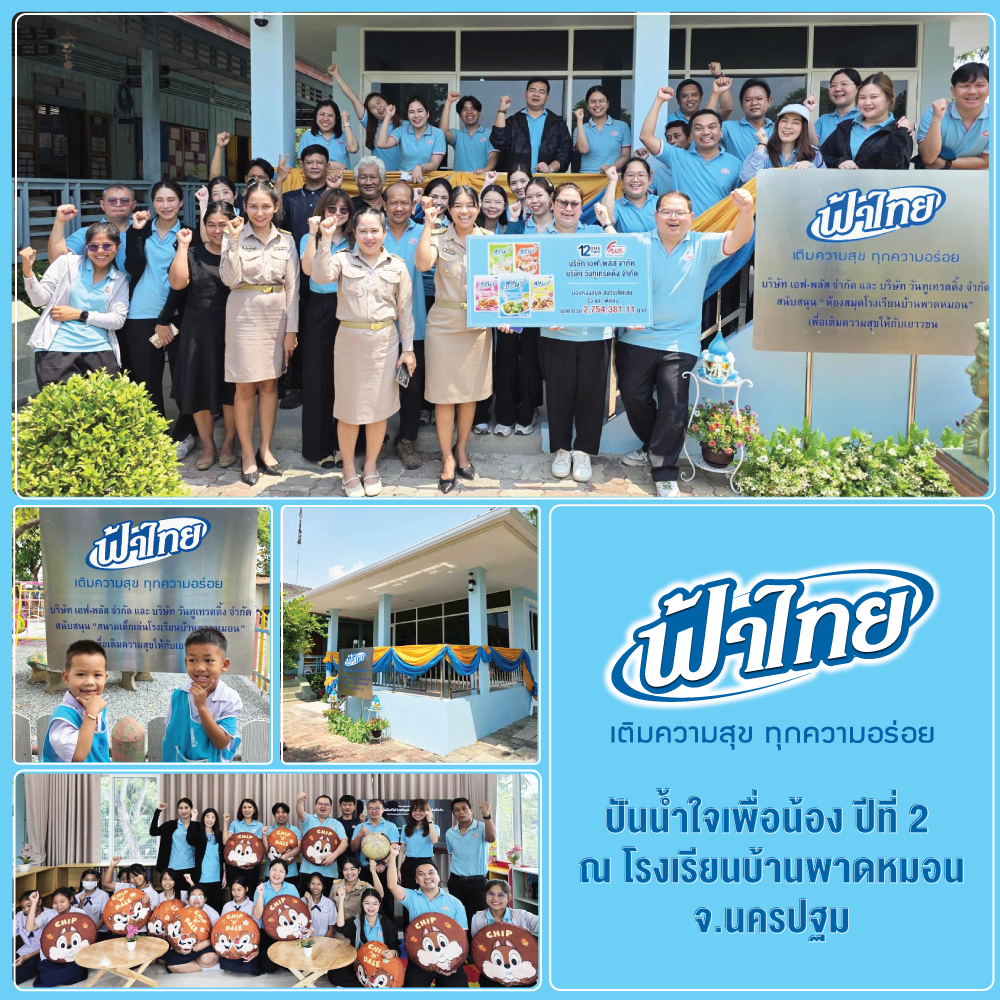 บริษัท เอฟ-พลัส จำกัด และ บริษัท วันทูเทรดดิ้ง จำกัด (แบรนด์ฟ้าไทย) ทำบุญ ปรับปรุงอาคารเรียน ห้องคอมพิวเตอร์ สนามกีฬา ก่อสร้างห้องสุขา มอบอุปกรณ์กีฬาและไอที รวมไปถึงจัดกิจกรรมในวันเด็ก มูลค่ารวม 2,867,088 บาท ให้กับโรงเรียนวัดราษฎร์ศรัทธาราม จ.นครปฐม เมื่อวันที่ 10 มกราคม 2568
