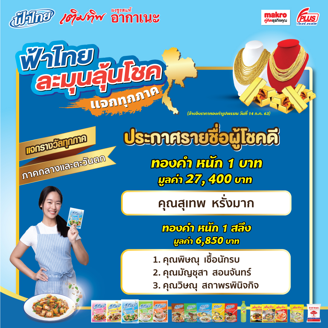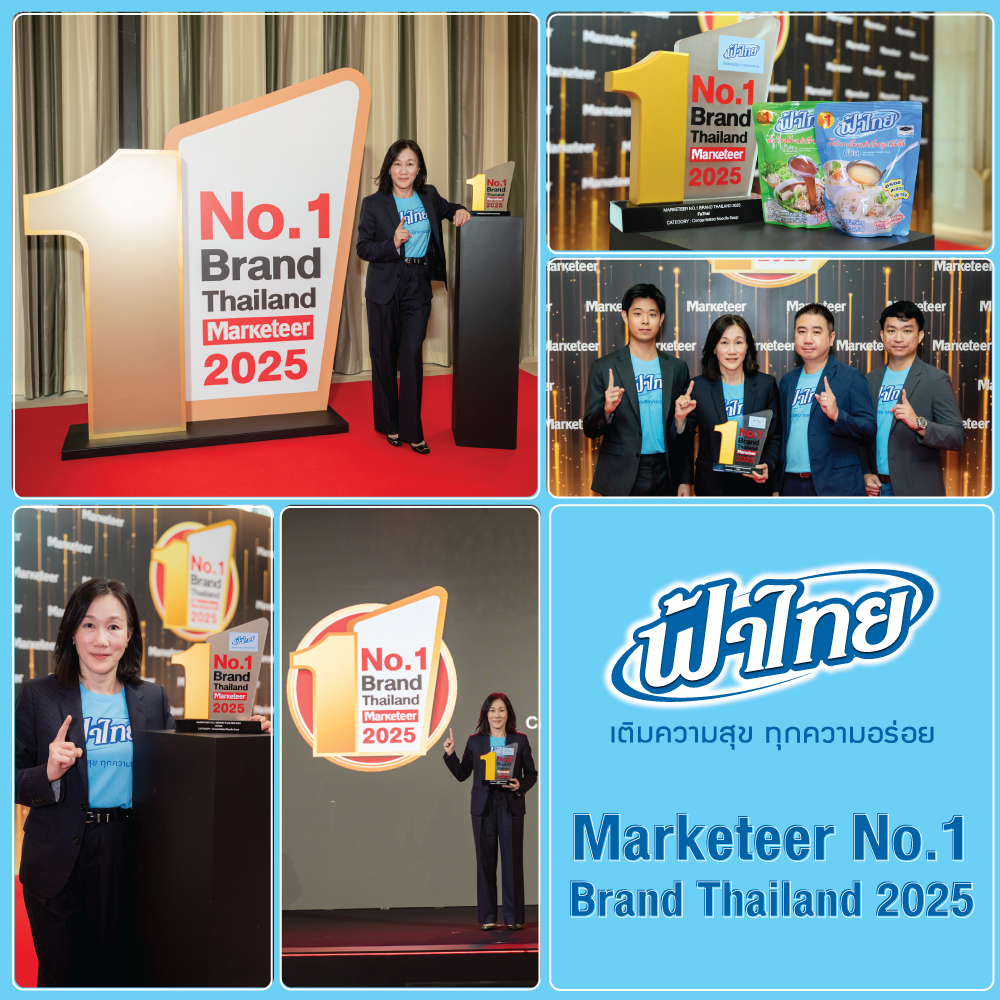 แบรนด์ฟ้าไทย เข้าร่วมพิธีมอบรางวัล "No.1 Brand Thailand 2025" โดยได้รับรางวัลในหมวด น้ำซุปก๋วยเตี๋ยวสำเร็จรูป จาก Markerteer เมื่อวันที่ 17 กรกฎาคม 2568 ณ โรงแรมสยามเคมปินสกี้