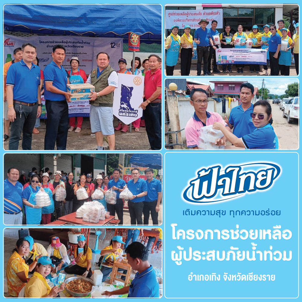 ด้วยสถานการณ์น้ำท่วมในเขตพื้นที่ภาคเหนือในช่วงนี้ บริษัท เอฟ-พลัส จำกัด ได้มอบหมายสโมสรโรตารีนครเทิง ประสานจัดเตรียมอาหารปรุงสำเร็จพร้อมทาน เพื่อแจกจ่ายให้ผู้ประสบอุทกภัย ที่ อ.เทิง จ.เชียงราย ในวันที่ 25-26 ส.ค. 2567 ที่ผ่านมา ทางบริษัทฯ ขอเป็นส่วนหนึ่งในการช่วยเหลือและให้กำลังใจผู้ประสบอุทกภัยในเขตภาคเหนือทุกครัวเรือน ให้ผ่านพ้นเหตุการณ์ในครั้งนี้ไปได้ด้วยดี