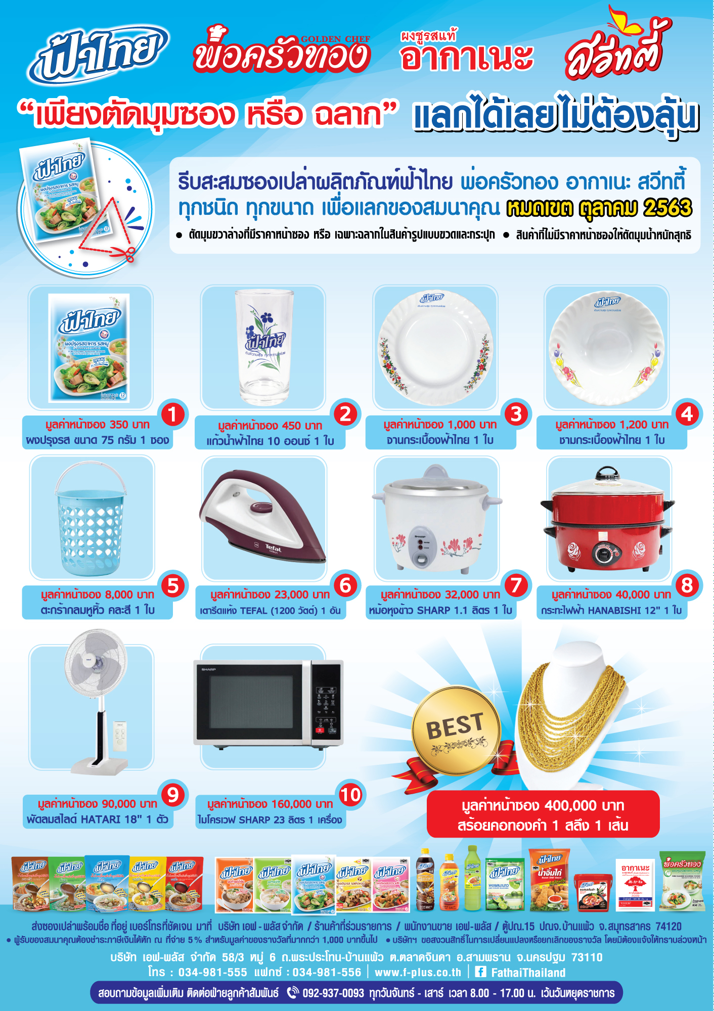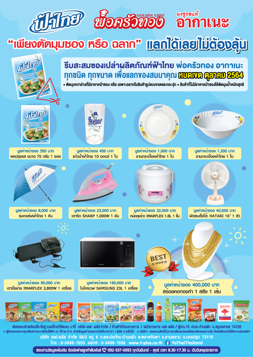 บริษัท เอฟ-พลัส จำกัด และ วันทูเทรดดิ้ง จำกัด ขอส่งต่อความห่วงใยและกำลังใจไปยังพี่น้องชาวไทยที่กำลังเผชิญสถานการณ์ยากลำบาก ผ่านการมอบผลิตภัณฑ์จากแบรนด์ ฟ้าไทย เติมทิพ และอากาเนะ เพื่อร่วมบรรเทาความเดือดร้อนและสร้างพลังใจให้ทุกคนก้าวผ่านไปด้วยกัน