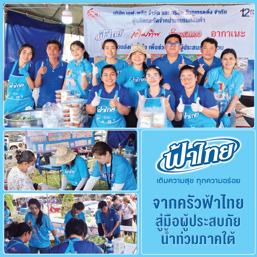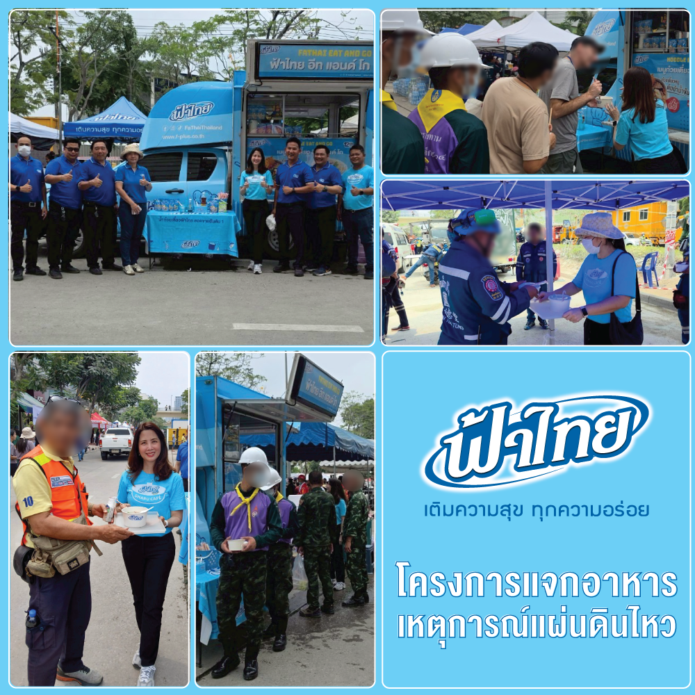 บริษัท เอฟ-พลัส จำกัด และ บริษัท วันทูเทรดดิ้ง จำกัด (แบรนด์ฟ้าไทย) ได้นำเมนูก๋วยเตี๋ยวและข้าวกล่องทำสดใหม่ ไปแจกทีมงานกู้ภัยค้นหาผู้รอดชีวิต และครอบครัวผู้ประสบภัย จากเหตุการณ์แผ่นดินไหวและตึก สตง. ถล่ม เมื่อวันที่ 30-31 มีนาคม 2568 ทางบริษัทฯ ขอแสดงความเสียใจอย่างสุดซึ้งต่อเหตุการณ์ที่เกิดขึ้น และขอเป็นกำลังใจให้กับผู้ประสบภัยและครอบครัว รวมถึงเจ้าหน้าที่กู้ภัย จิตอาสาและน้องสุนัขกู้ภัย ขอให้ปฏิบัติงานด้วยความปลอดภัย #Pray for Thailand