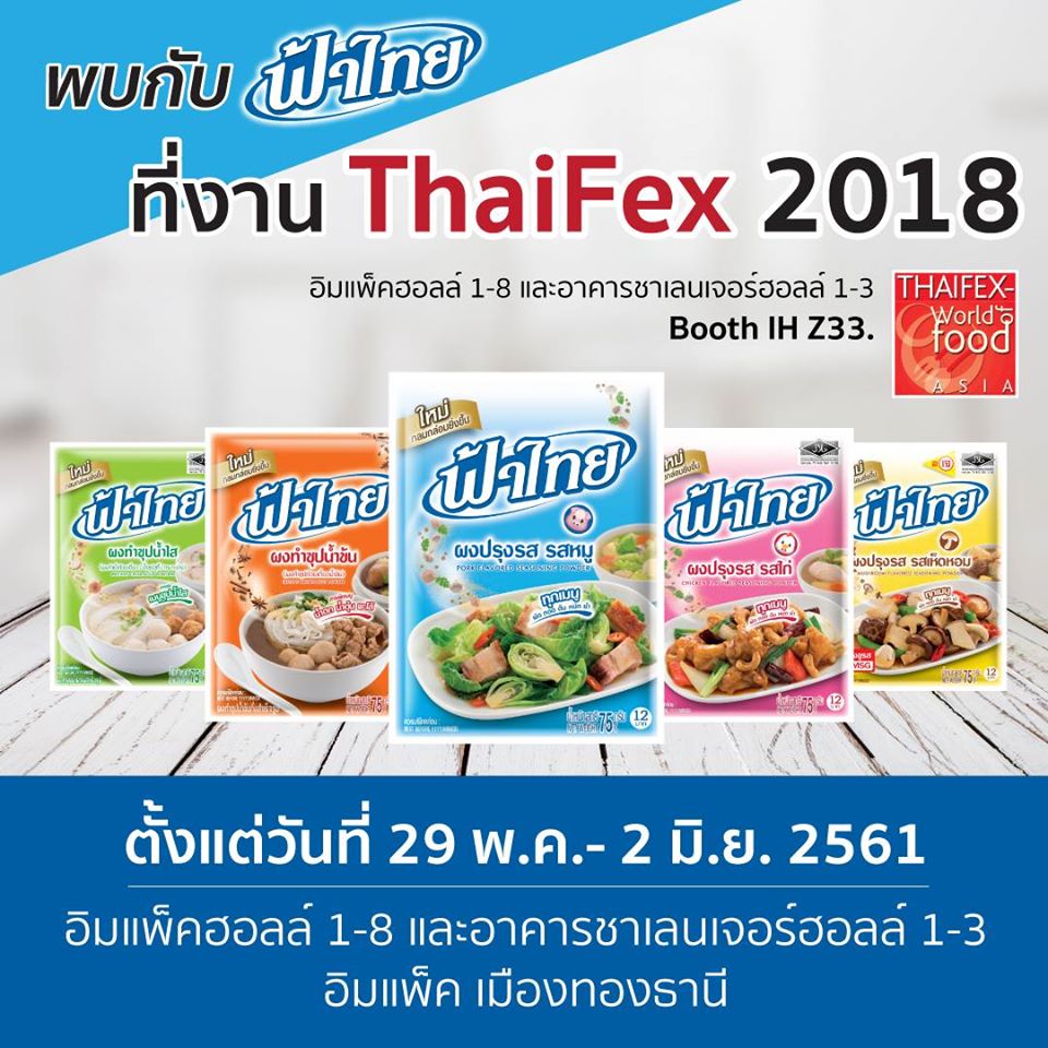 “ฟ้าไทย” ผลิตภัณฑ์เครื่องปรุงรสไทยที่ครองใจผู้บริโภคตลอดระยะเวลา 25 ปี ภายใต้การดำเนินงานของบริษัท เอฟ-พลัส จำกัด สร้างความประทับใจแก่ผู้เข้าชมงานแสดงสินค้าอาหารและเครื่องดื่มระดับนานาชาติที่ใหญ่ที่สุดในภูมิภาคเอเชีย THAIFEX - ANUGA ASIA 2025 ซึ่งจัดขึ้นระหว่างวันที่ 27 – 31 พฤษภาคมที่ผ่านมา ณ อิมแพ็ค เอ็กซิบิชั่น เซ็นเตอร์ เมืองทองธานี