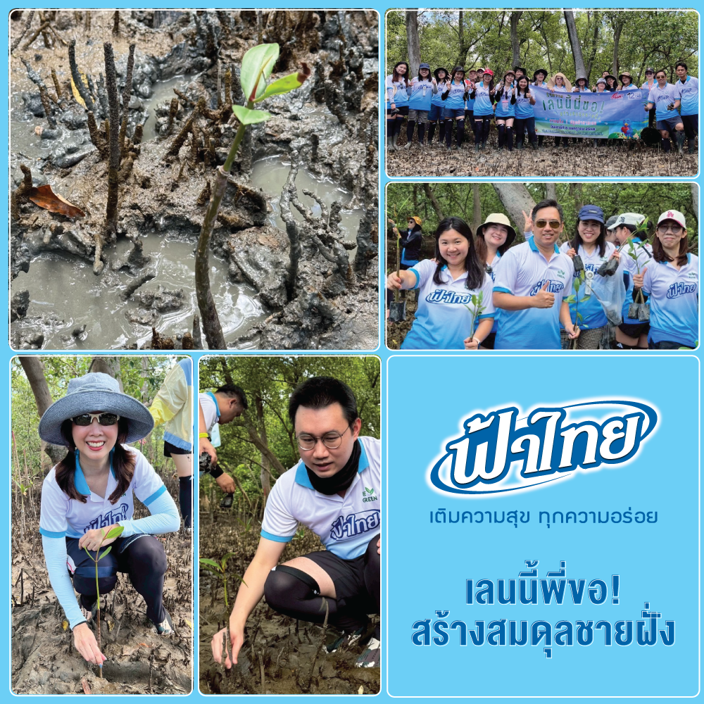 บริษัท เอฟ-พลัส จำกัด และ บริษัท วันทูเทรดดิ้ง จำกัด (แบรนด์ฟ้าไทย) ได้จัดกิจกรรม CSR ภายใต้แนวคิด “ฟ้าไทย หัวใจรักษ์โลก” ผ่านโครงการ “เลนนี้พี่ขอ! สร้างสมดุลชายฝั่ง” ณ ป่าชายเลนคลองโคน จ.สมุทรสงคราม